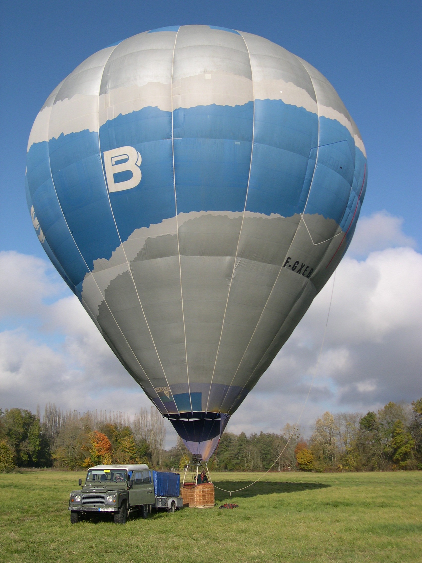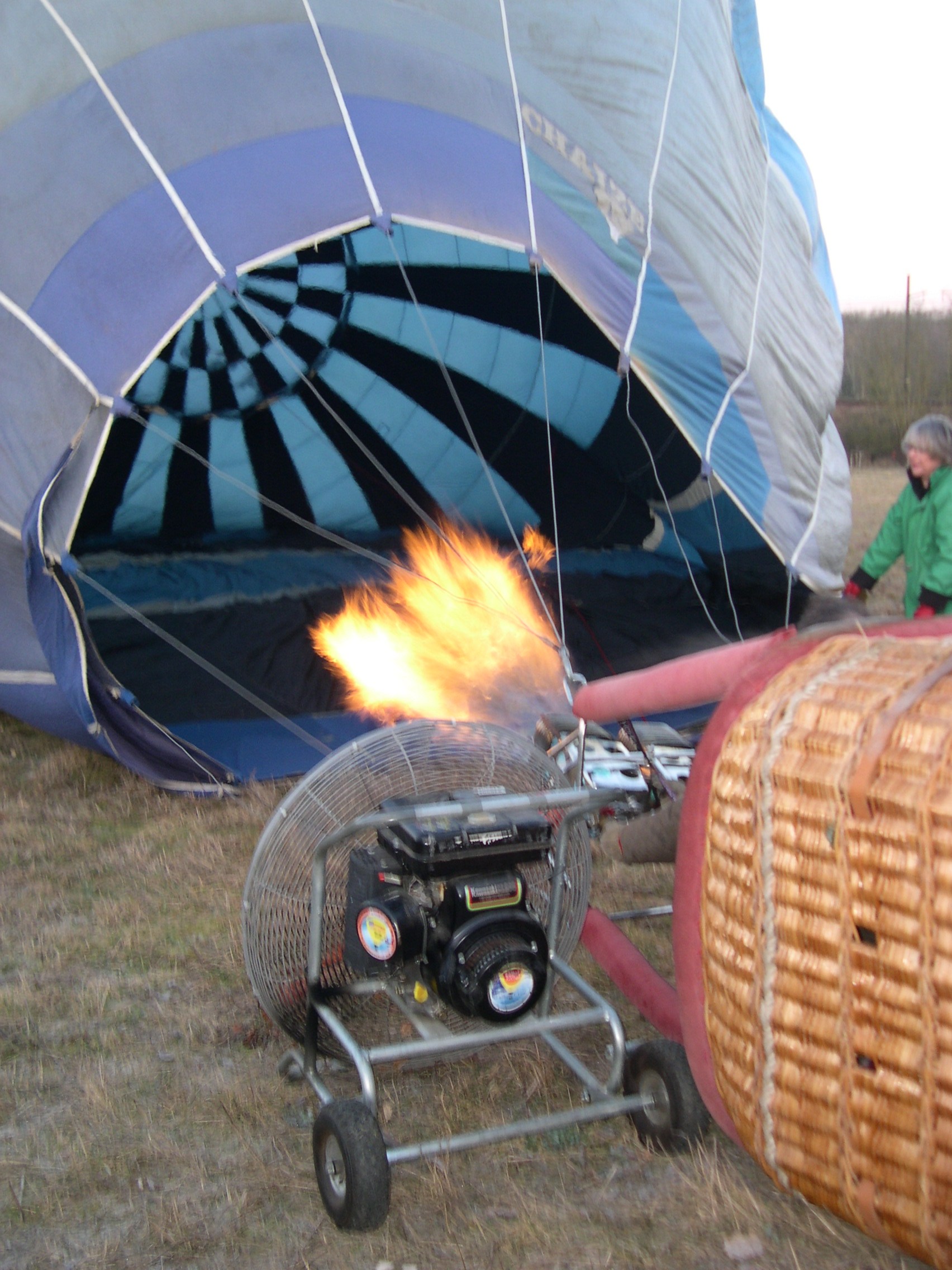 ballon est étalée. Le gonflage commence puis une fois terminé, le pilote