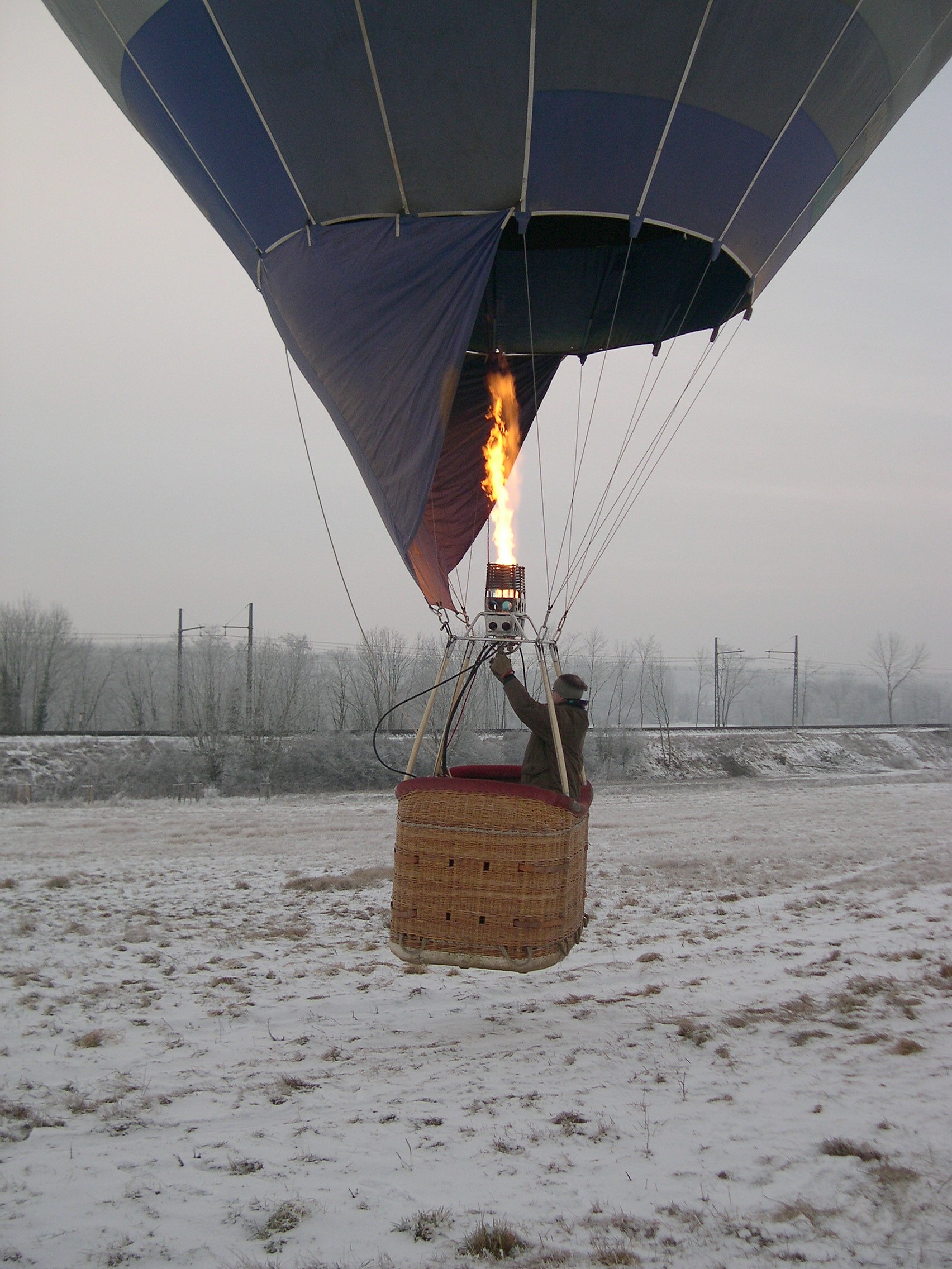 réchauffe l'air contenu dans le ballon avec le brûleur. La montgolfière